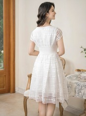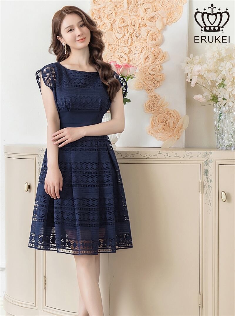 ERUKEI【エルケイ】フレンチスリーブ・ケミカルレース・Aライン・ミディアムドレス【E23096】