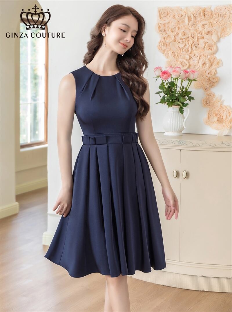 ERUKEI【エルケイ】ノースリーブ・タック・プリーツ・Aライン・ミディアムドレス【C23072】