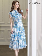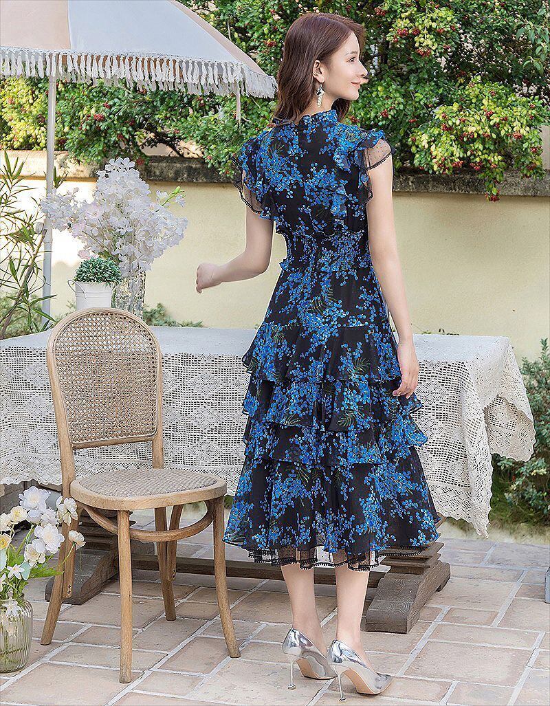 ERUKEI【エルケイ】ティアード・フリル・プチハイネック・ミディアムドレス【S11208】
