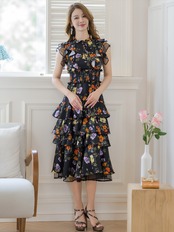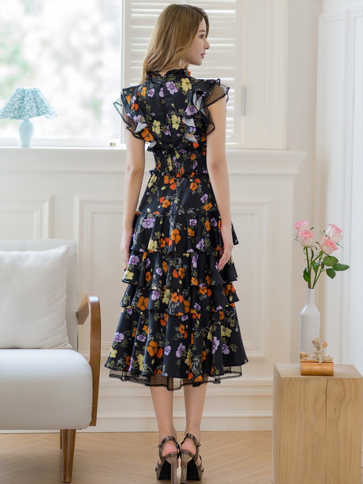 ERUKEI【エルケイ】ティアード・フリル・プチハイネック・ミディアムドレス【S61208】