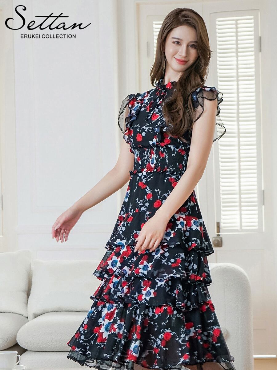 ERUKEI【エルケイ】ティアード・フリル・プチハイネック・ミディアムドレス【S61208】