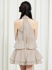 【Angel R】シフォン/ホルターネック/チェーン/ウエストベルト/ビジュー/パール//フレアミニドレス(AR)