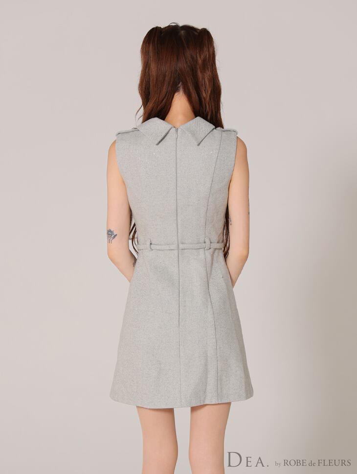 襟付きバストジップノースリーブベルトデザインミニキャバドレス(DE3259)
