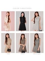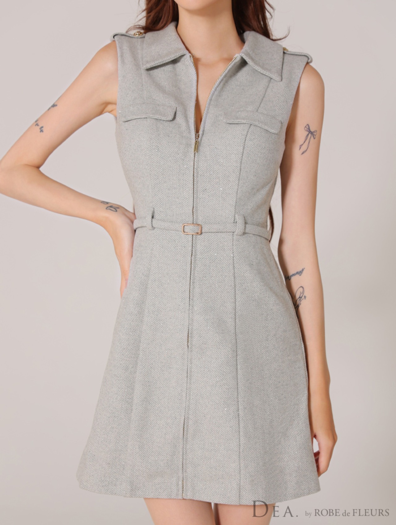 襟付きバストジップノースリーブベルトデザインミニキャバドレス(DE3259)