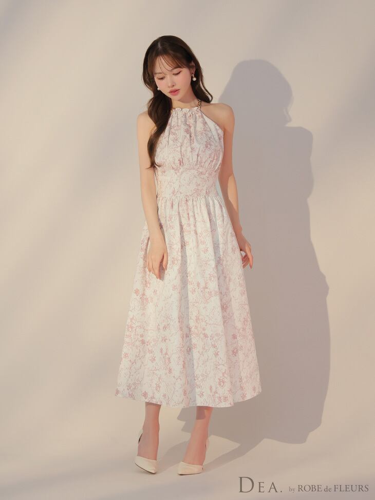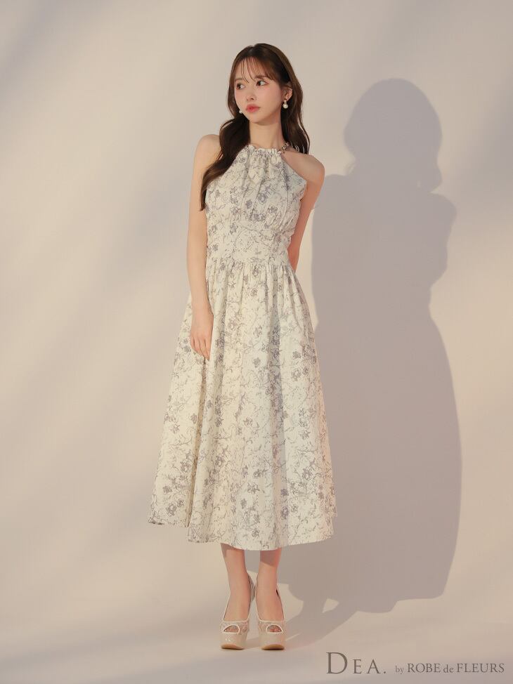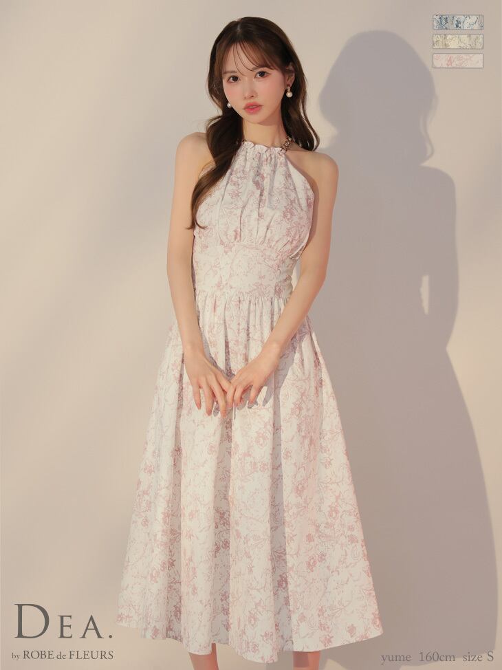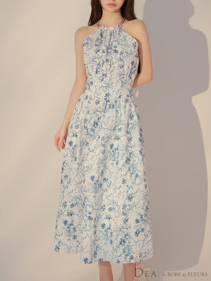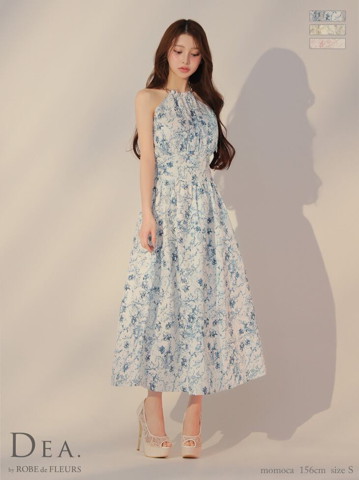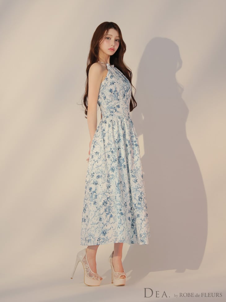 花柄ホルターネックフレアロングキャバドレス(DE3783)