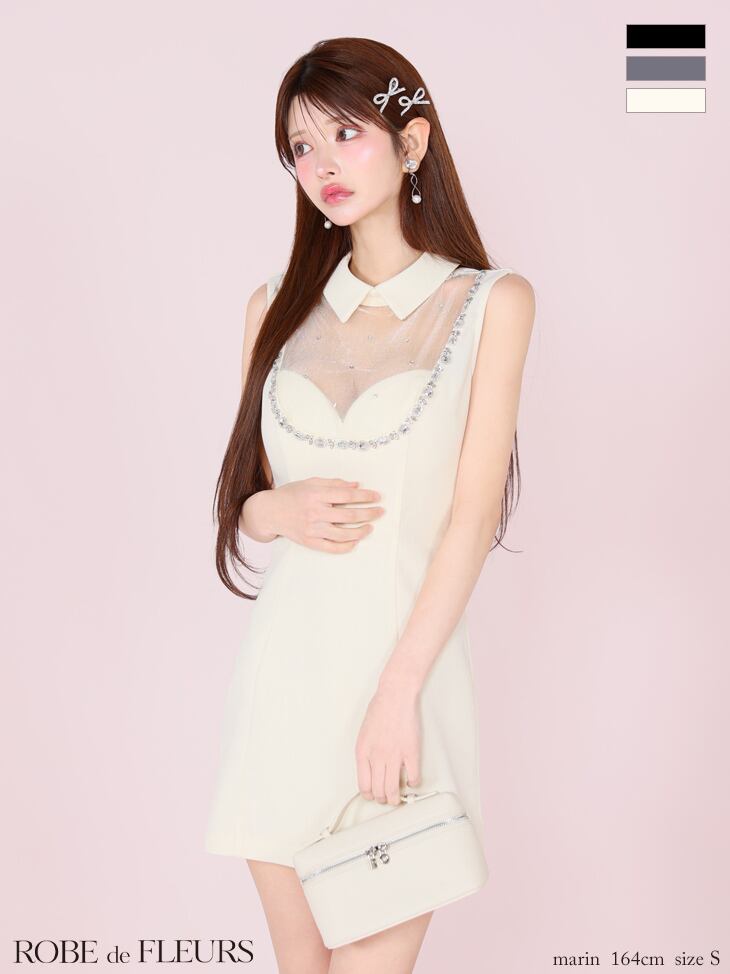 【再入荷】ビジューシアーチュールタイトミニキャバドレス(fm3447)