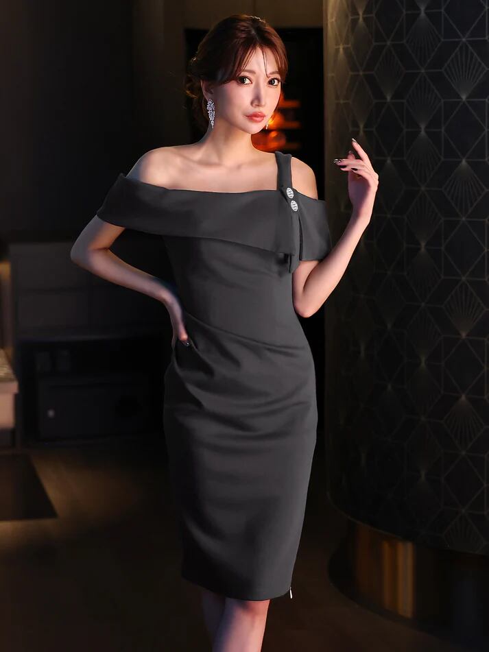 上品なSEXYさが滲み出るオフショルダーのタイトドレス。