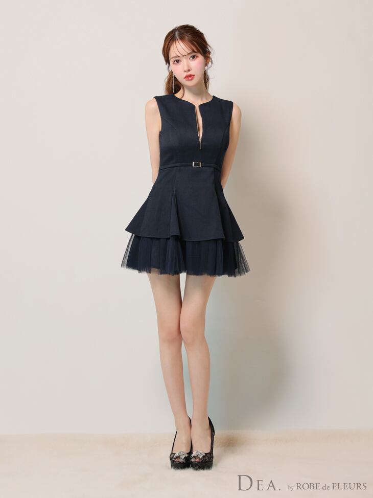 ノースリーブベルトデザインチュールミニキャバドレス(DE3444)