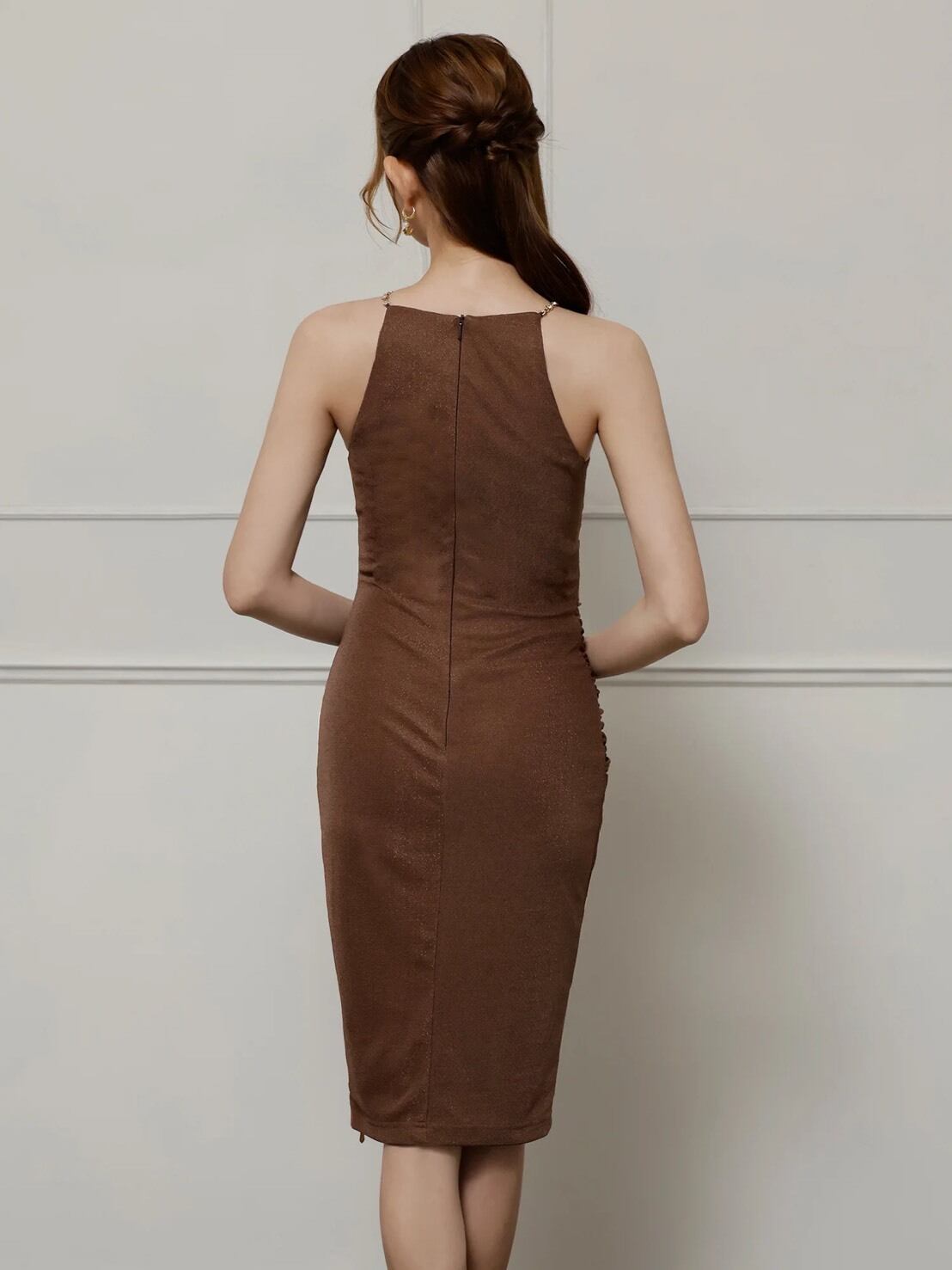 【Angel R-Veautt】(ヴュート)ホルターネック/フロントシアーデザイン/ビジューチェーン/タイトミディアムドレス(VT082526)