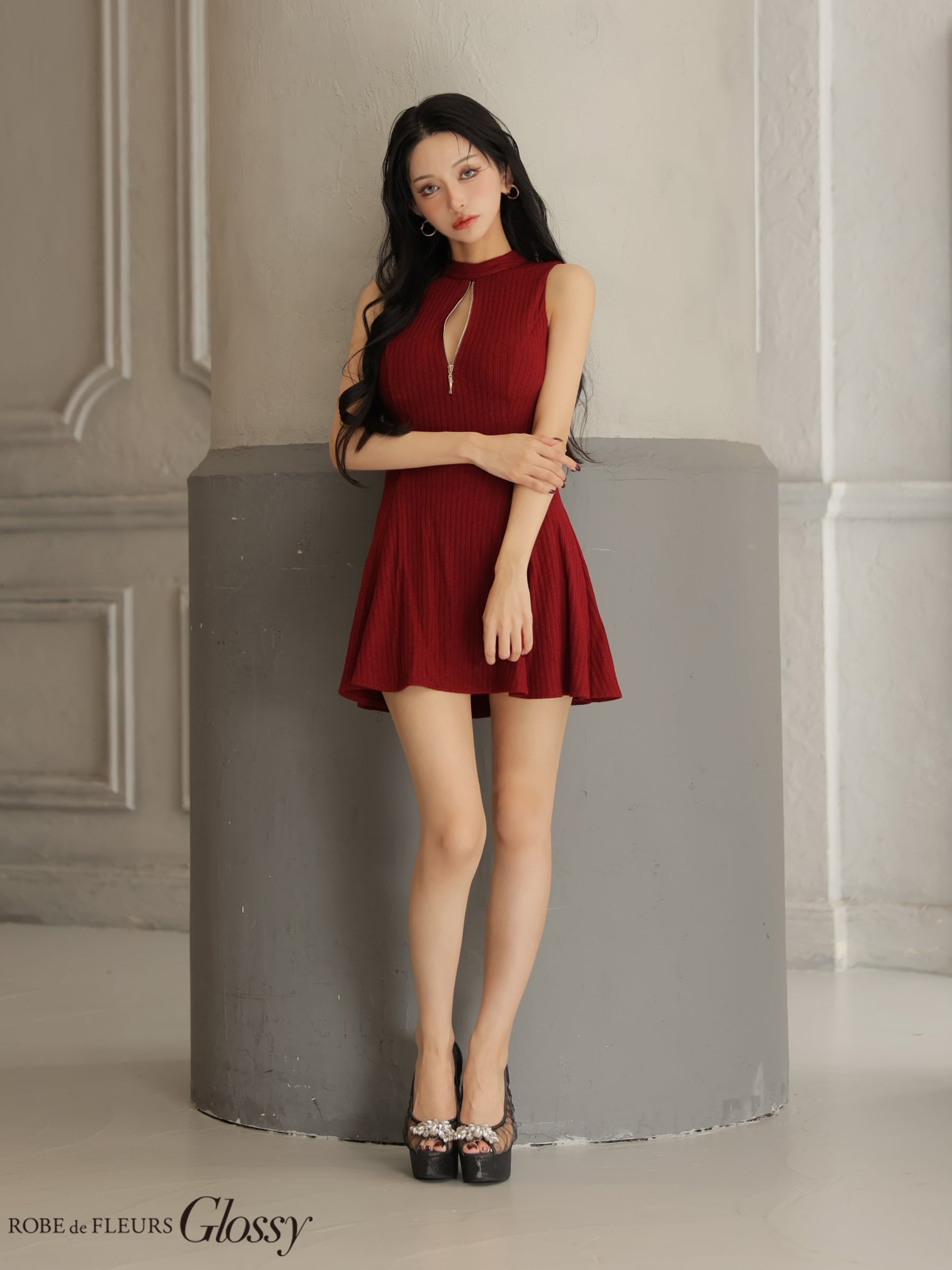 ラメニットハイネックノースリーブフレアミニキャバドレス(GL4622)