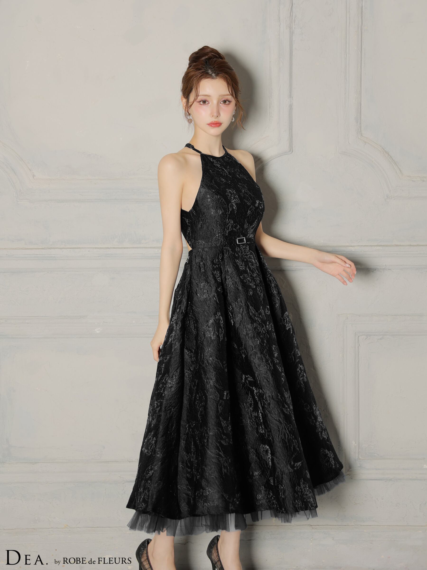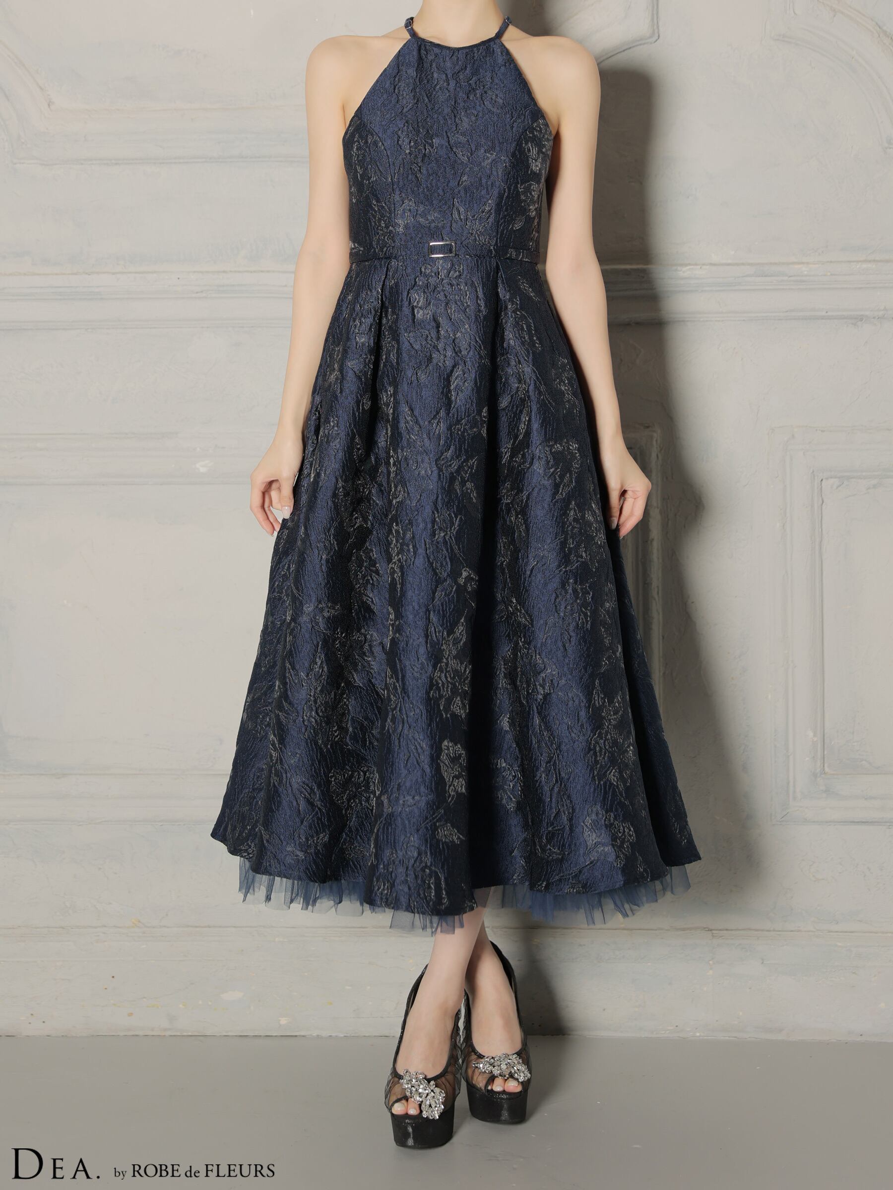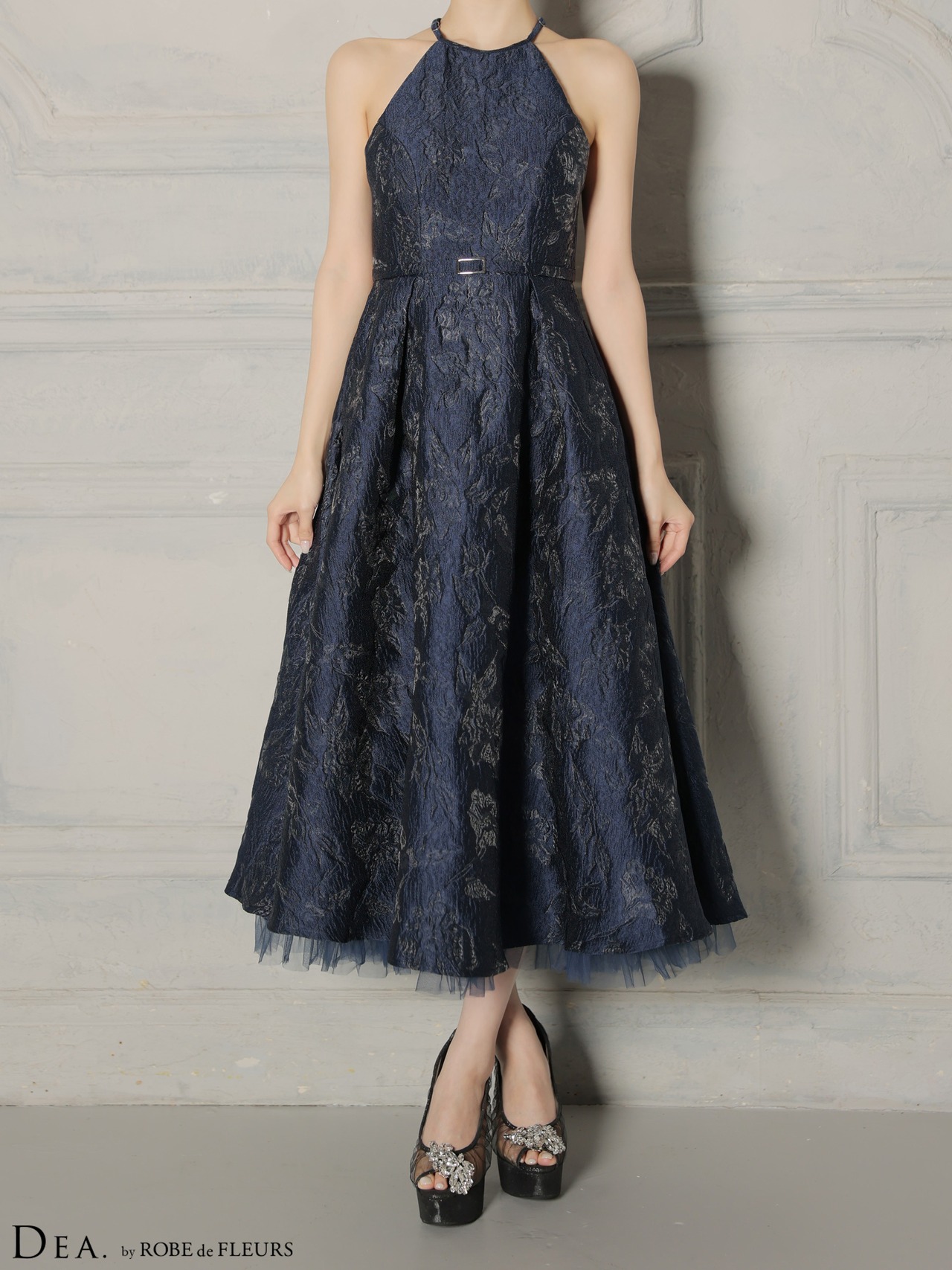 ラメジャガードハイネックフレアロングキャバドレス(DE4332)