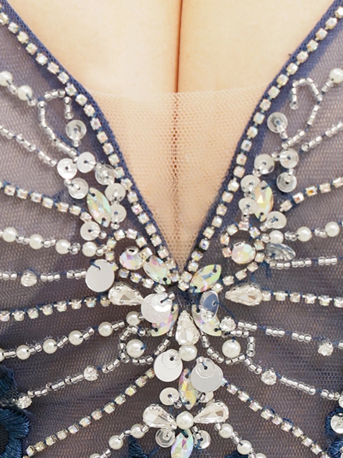 デコルテにはシアー素材を使い、上品な抜け感を演出。