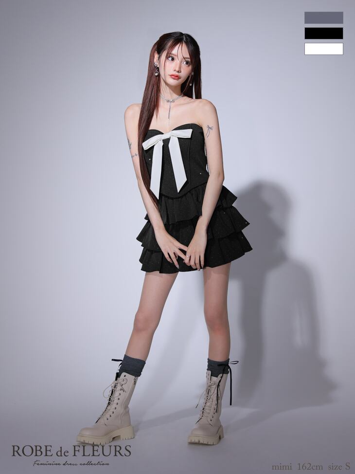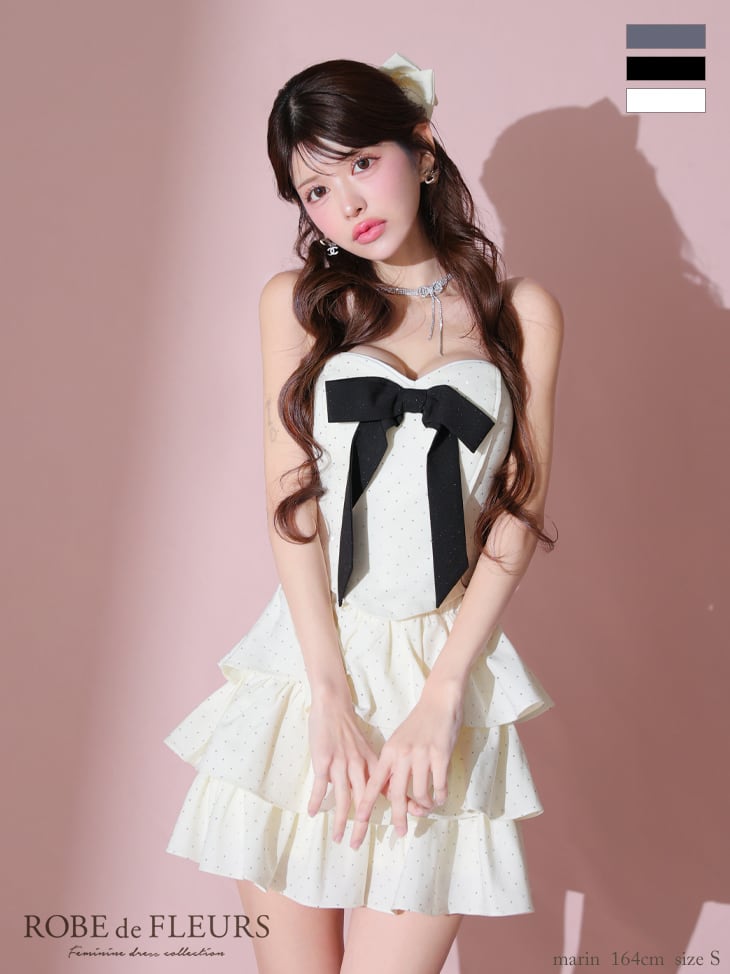 ビッグリボンティアードフレアミニキャバドレス(fm3769)