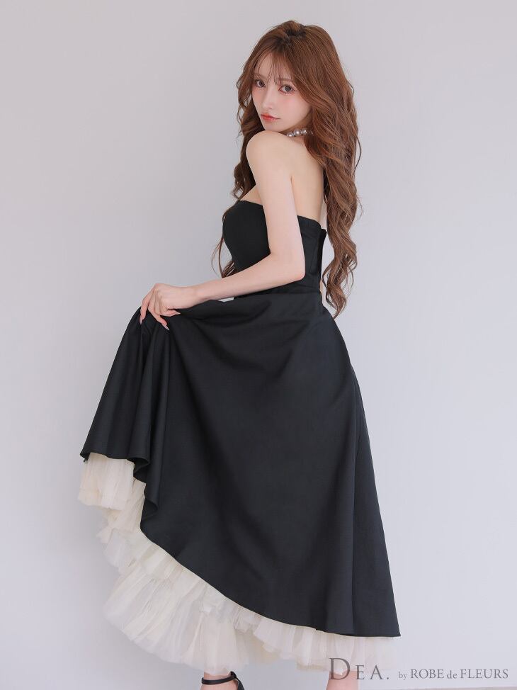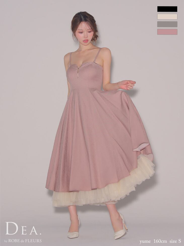 チュールレイヤードセンタージップフレアロングキャバドレス(DE3469) DEA【ディア】【DE3469】