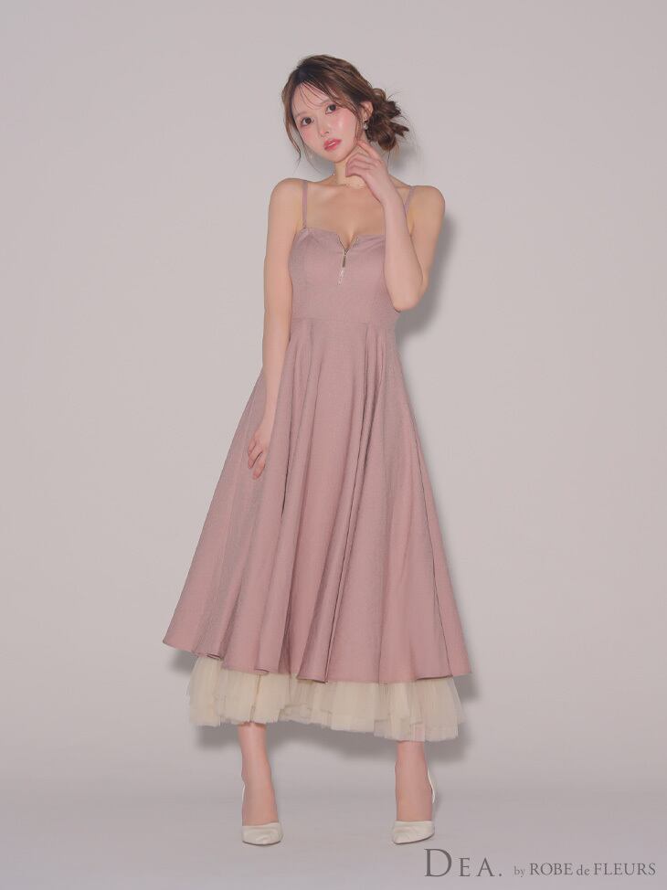 チュールレイヤードセンタージップフレアロングキャバドレス(DE3469)