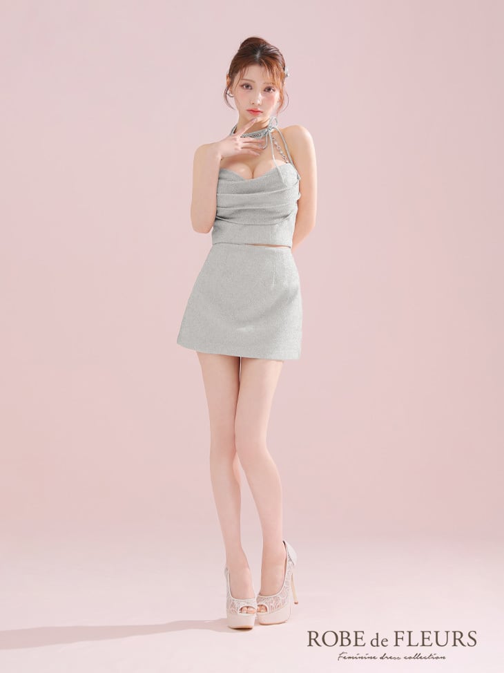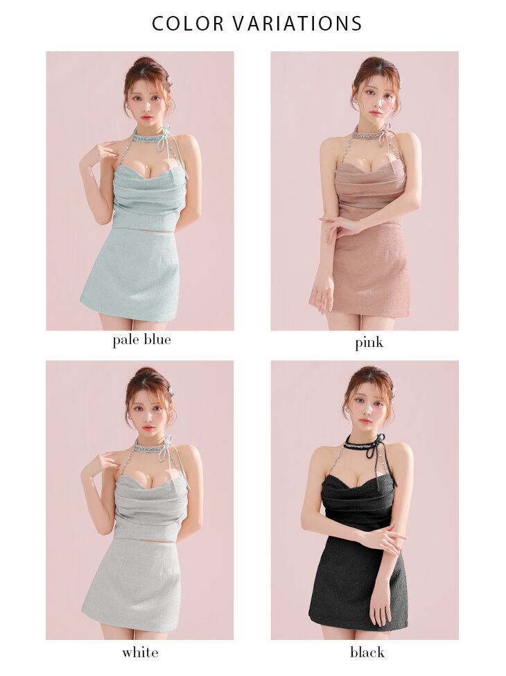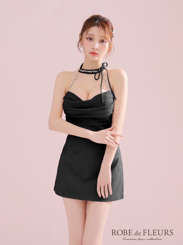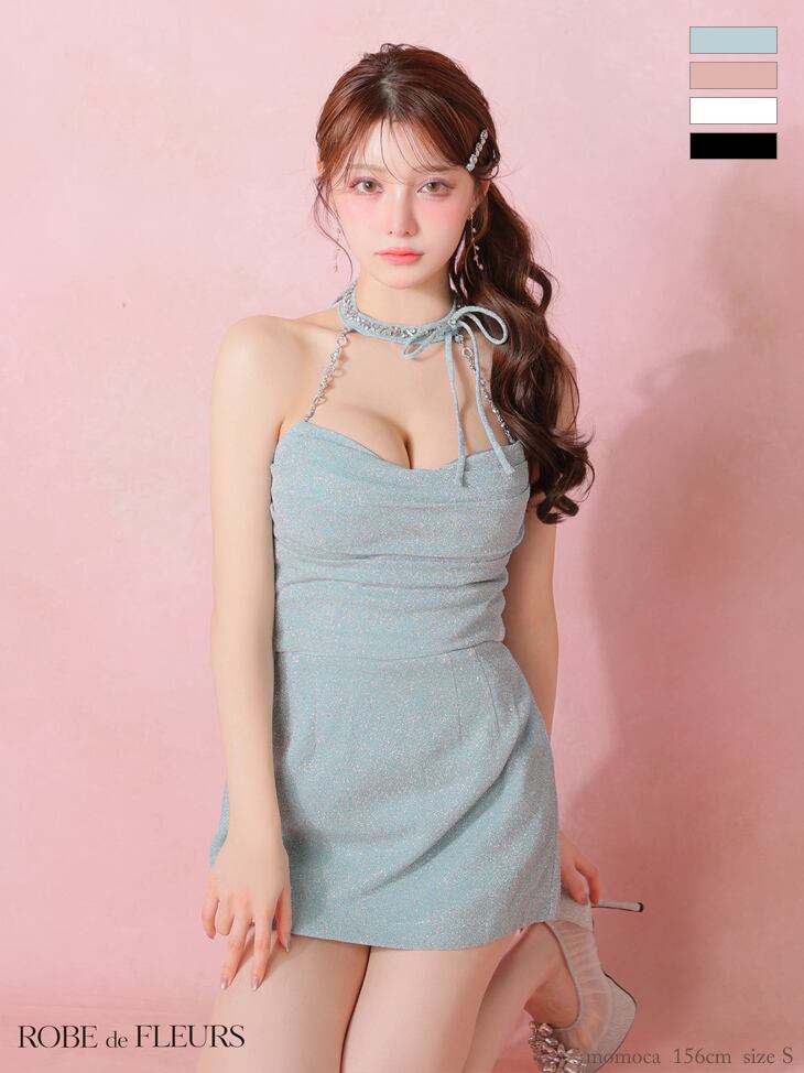 ラメニットリボンホルターセットアップタイトミニキャバドレス(fm3772)