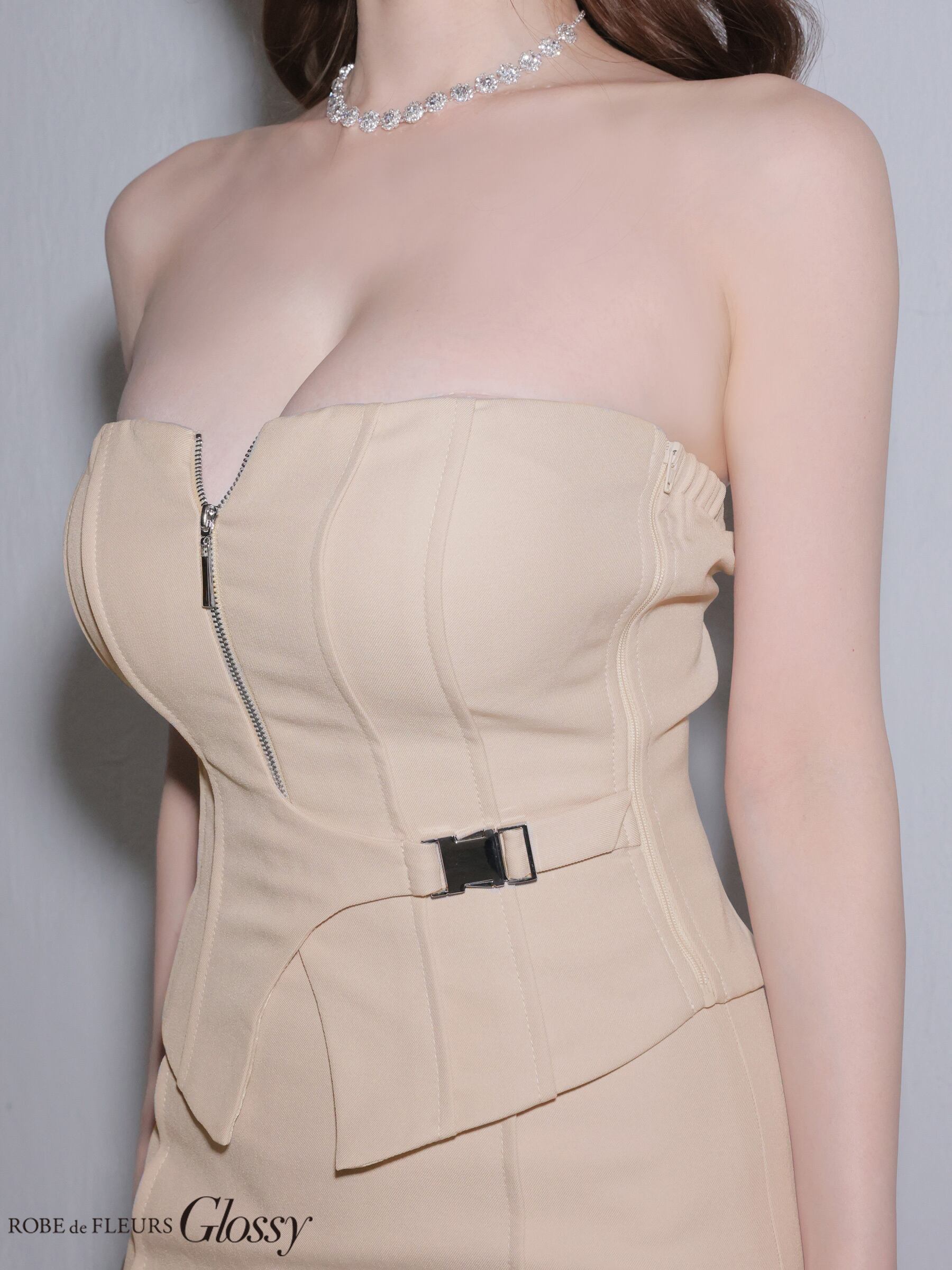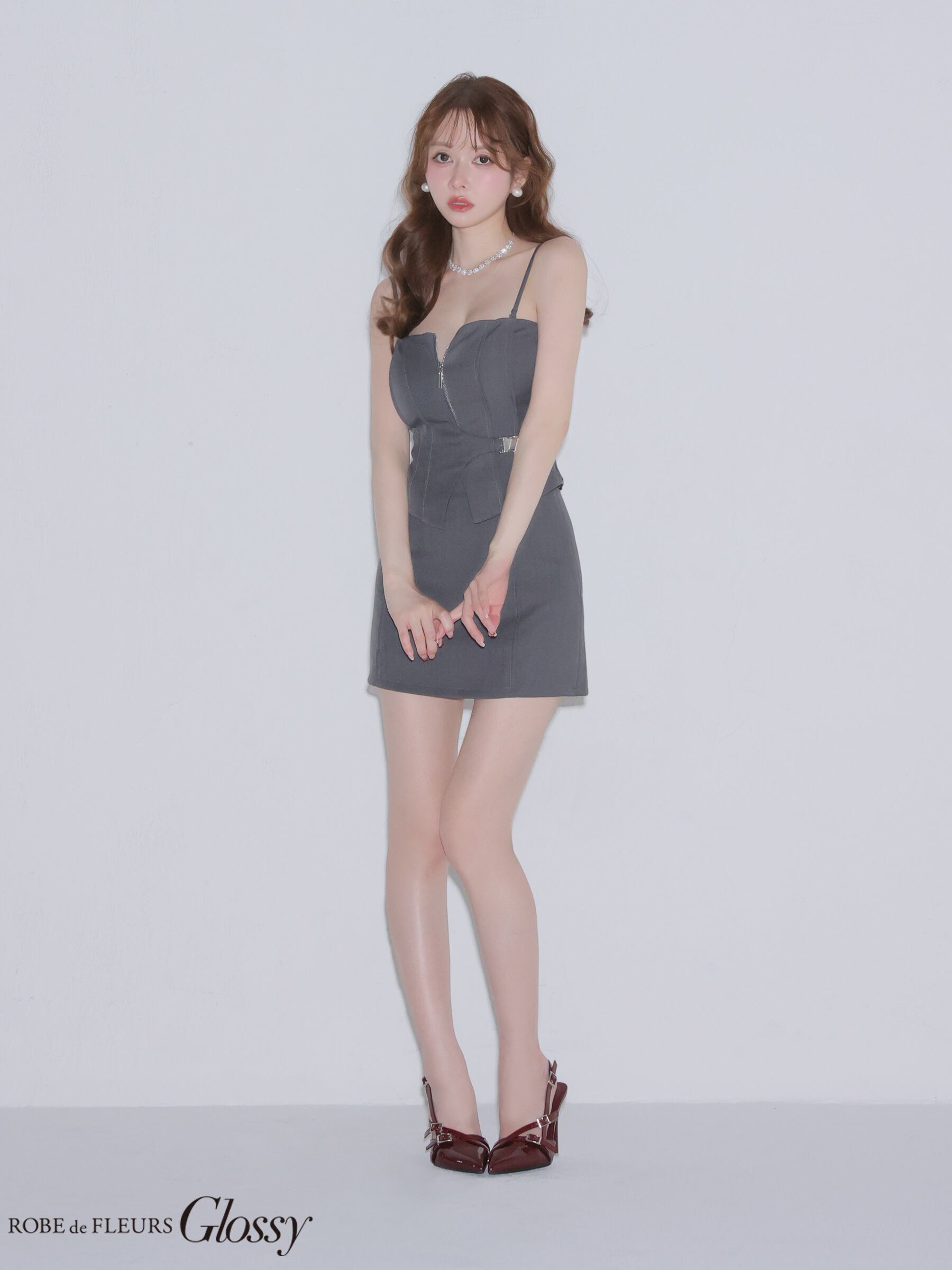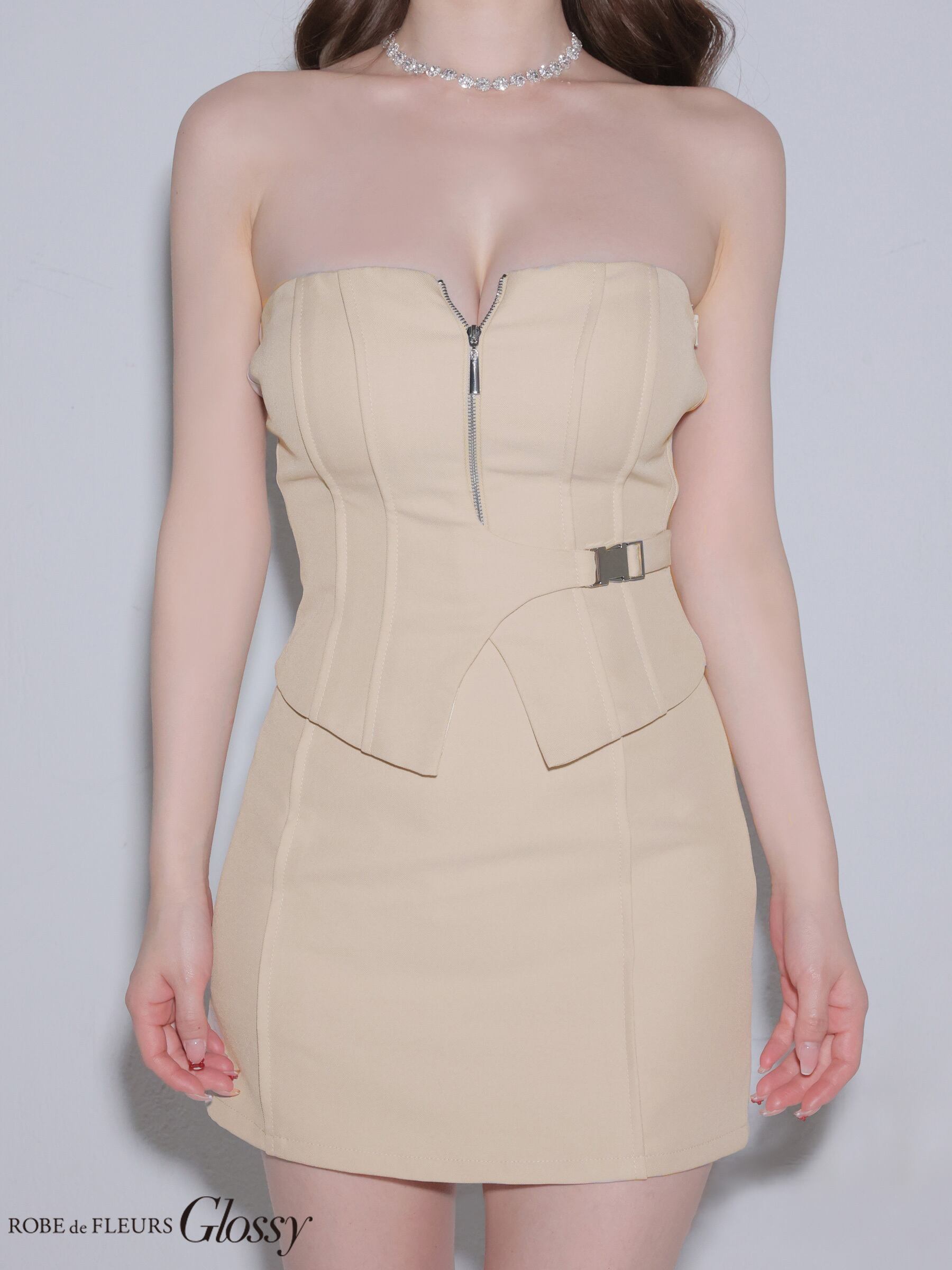 フロントジップサイドベルトセットアップミニキャバドレス (GL4164)
