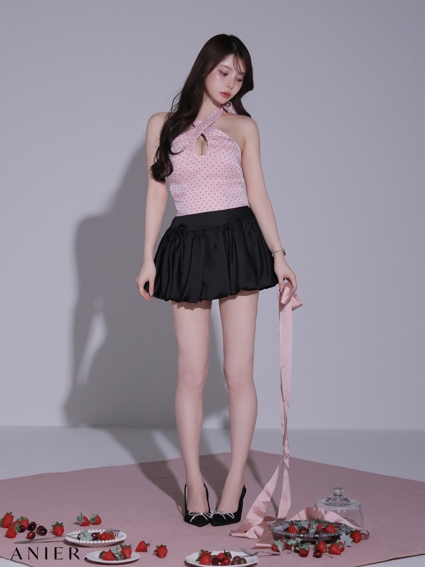 トップスもガーリーになりすぎないようシンプルに仕上げました。