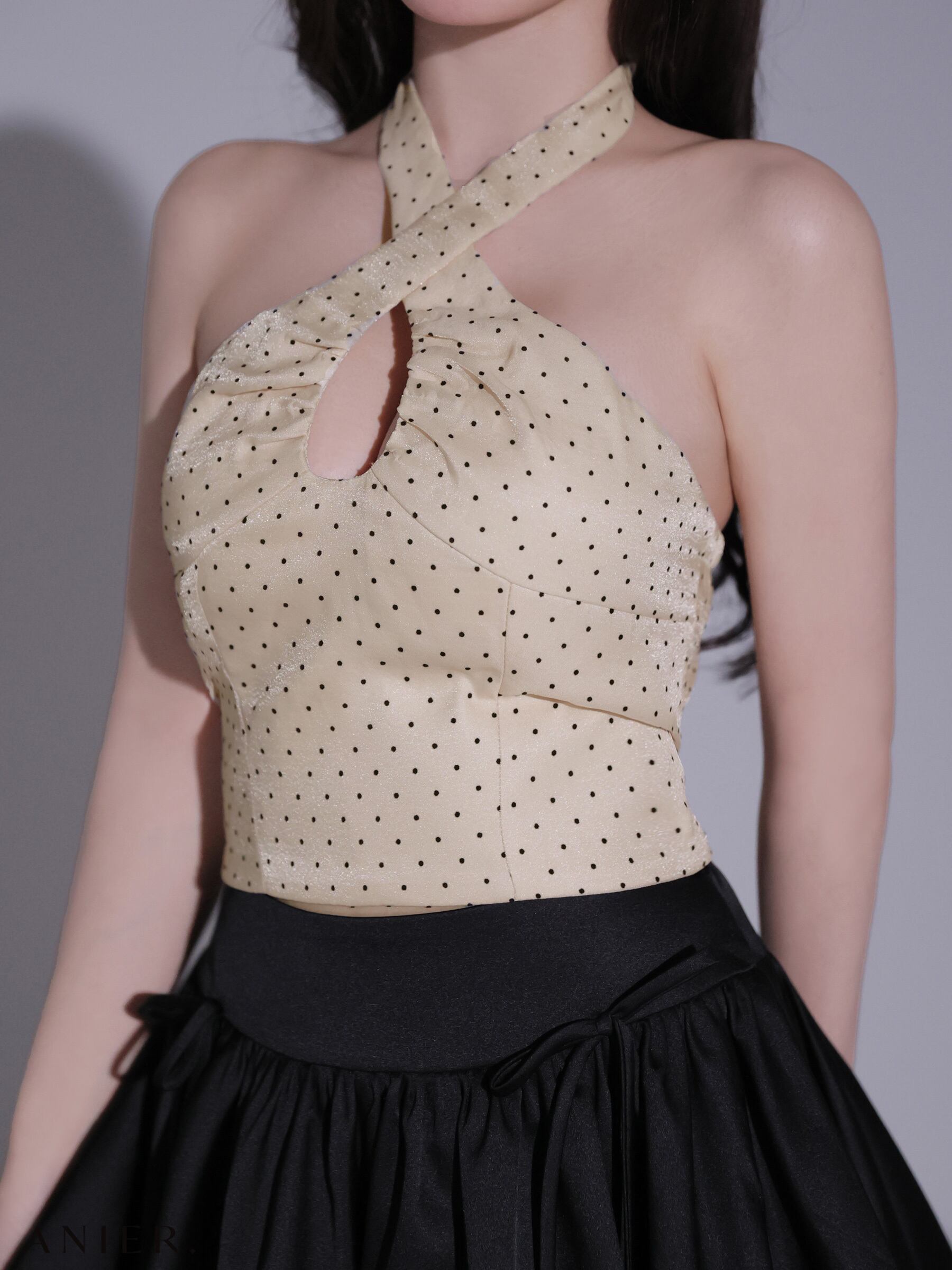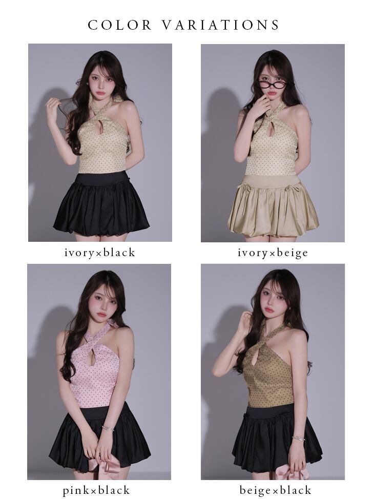 Dot organdy×balloon skirt two-piece mini dress (anier4065)