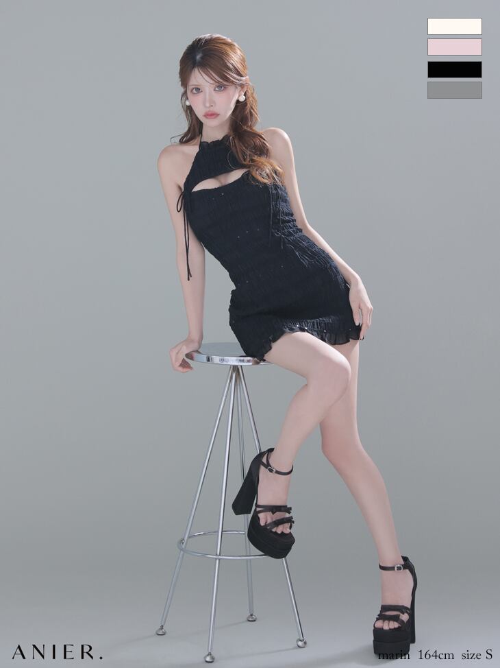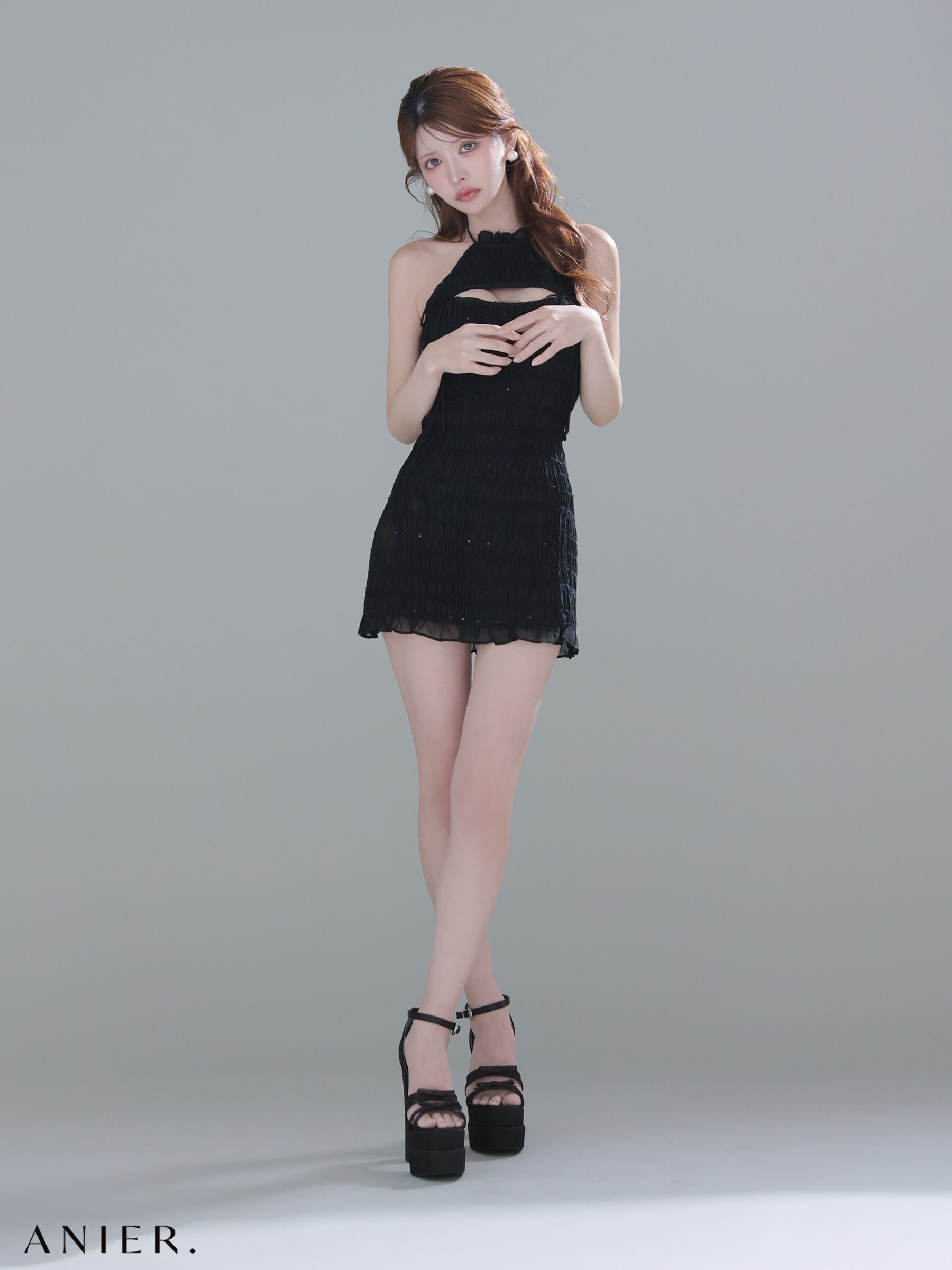 Chiffon amesuri bust cutout tight mini dress (anier4061)
