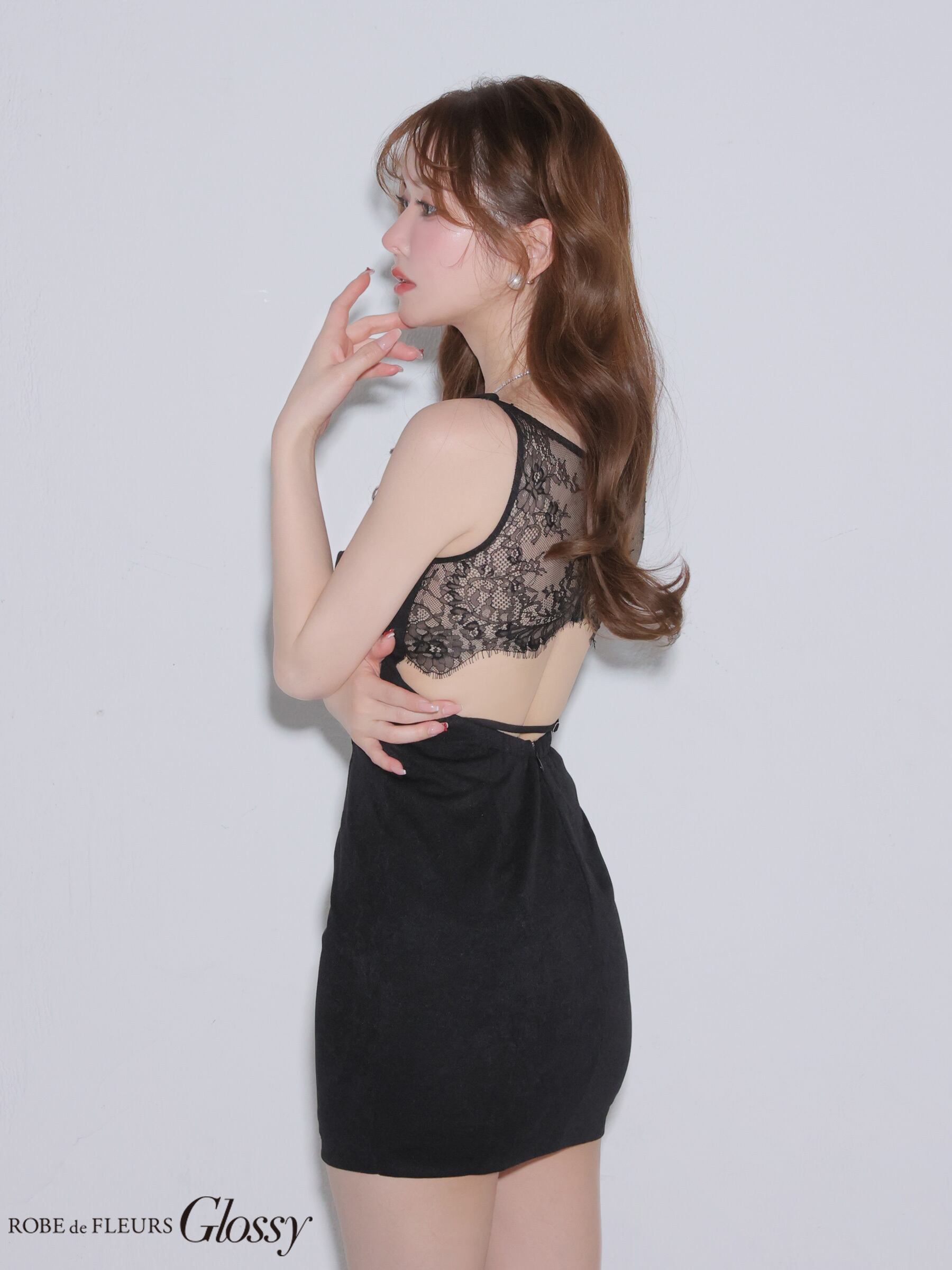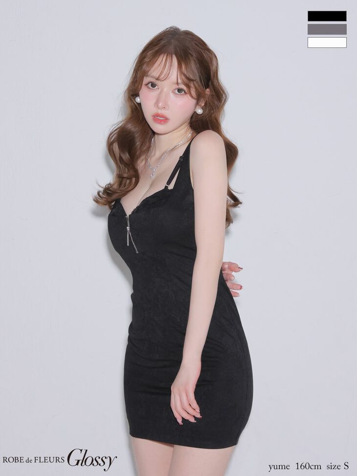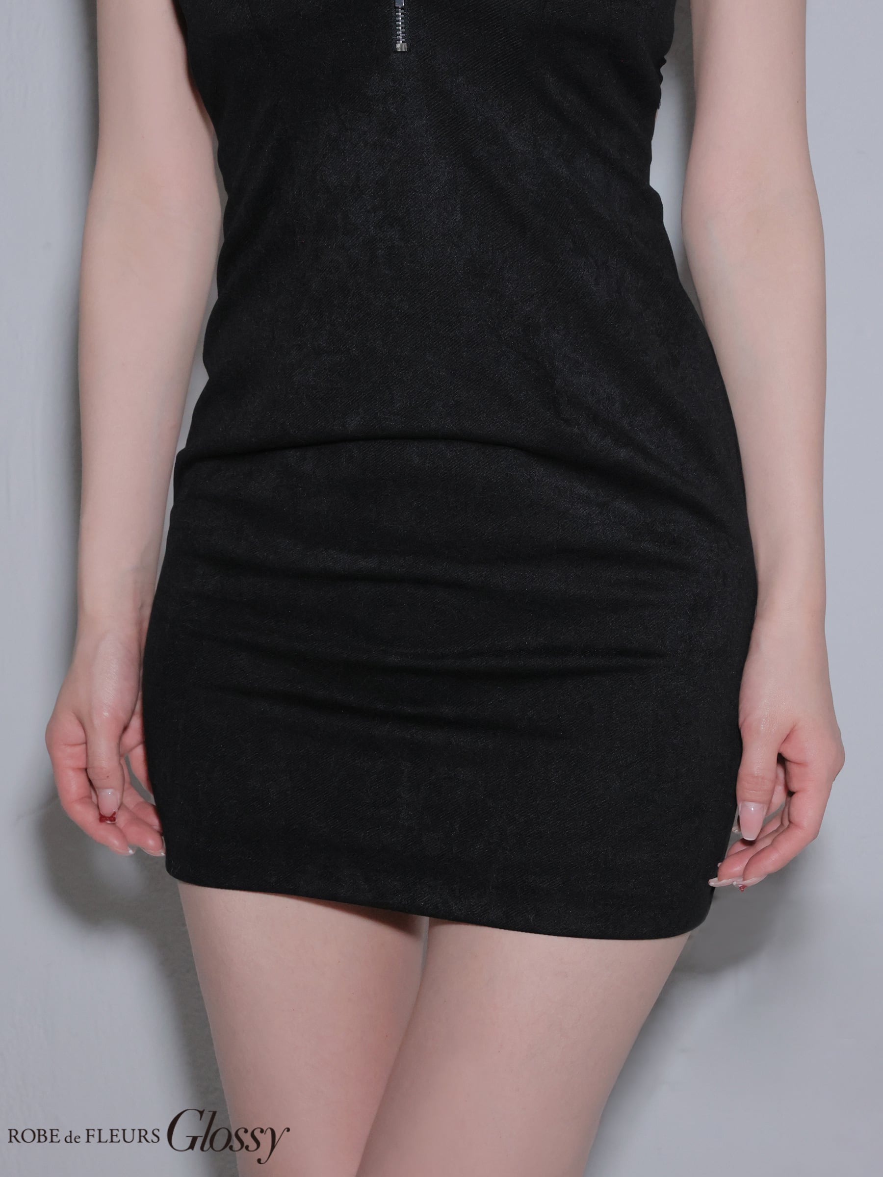 バックレースフロントジップタイトミニキャバドレス (GL4155)