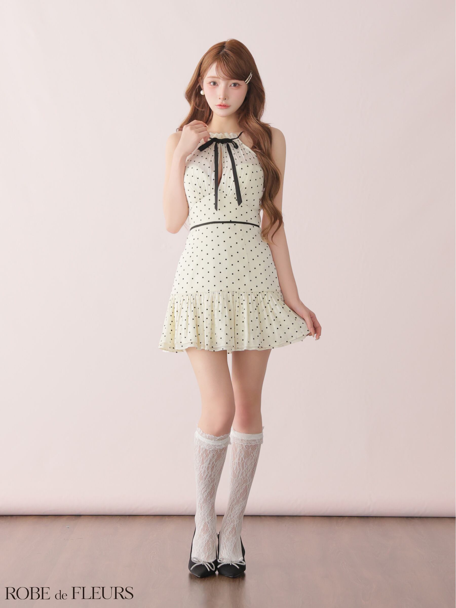ドットオーガンジーホルターリボンミニキャバドレス (fm4165)
