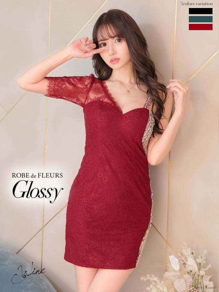 ビジューチュール×レーススリーブタイトミニドレス(GL2421)