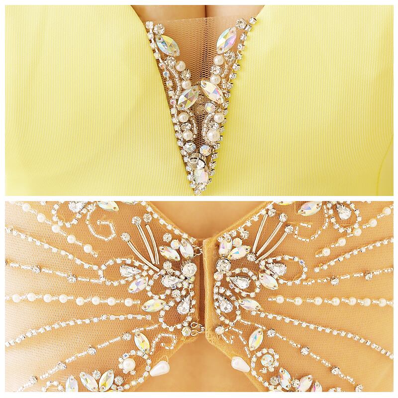 バックスタイルが大胆な肌魅せと繊細で芸術的なビジューデザインがCUTEでSEXYなタイトミニドレス。