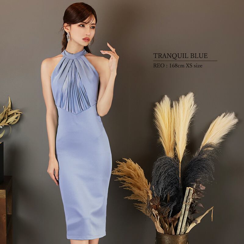 同色シフォンのフロントギャザーが女性らしい上品さをかもし出すタイトドレス。