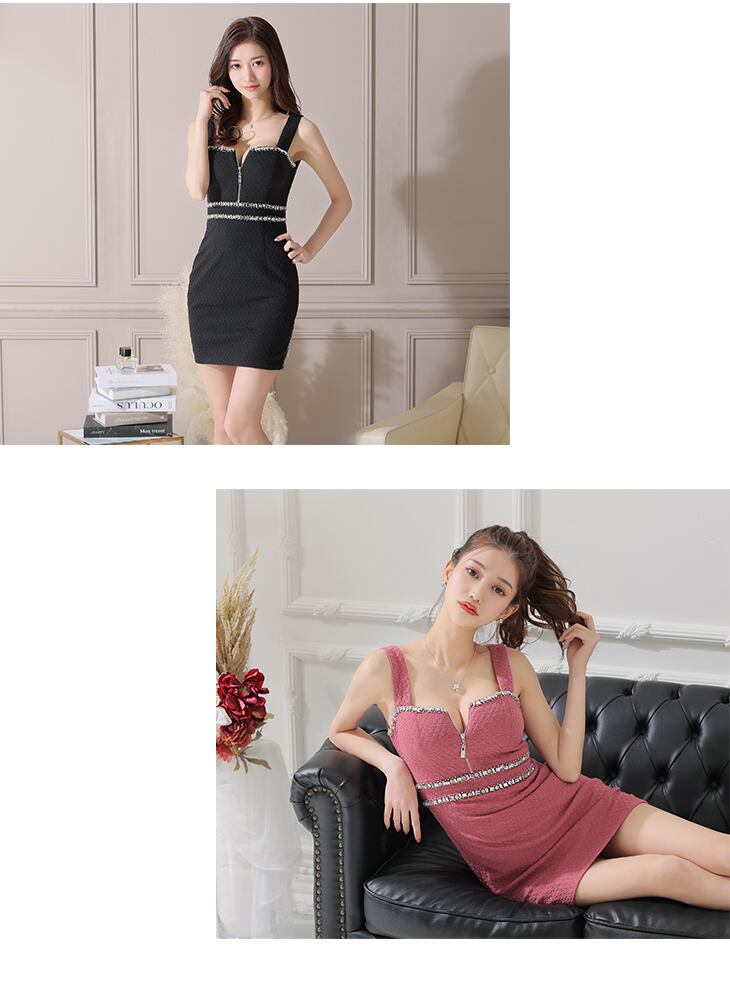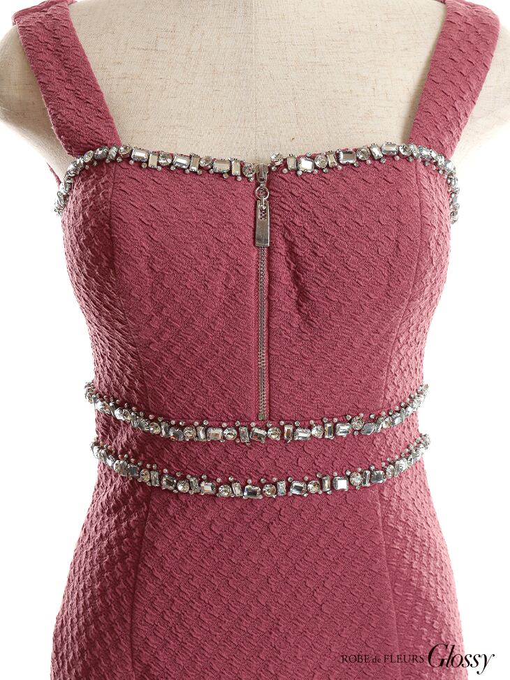 バストジッパー×ビジューワッフルタイトミニドレス(GL3109)