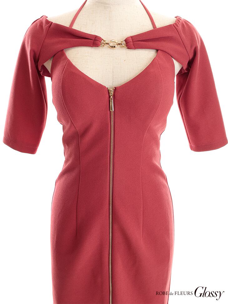 袖ありバックルフロントジッパーミニドレス【ストレッチあり】(GL2844)