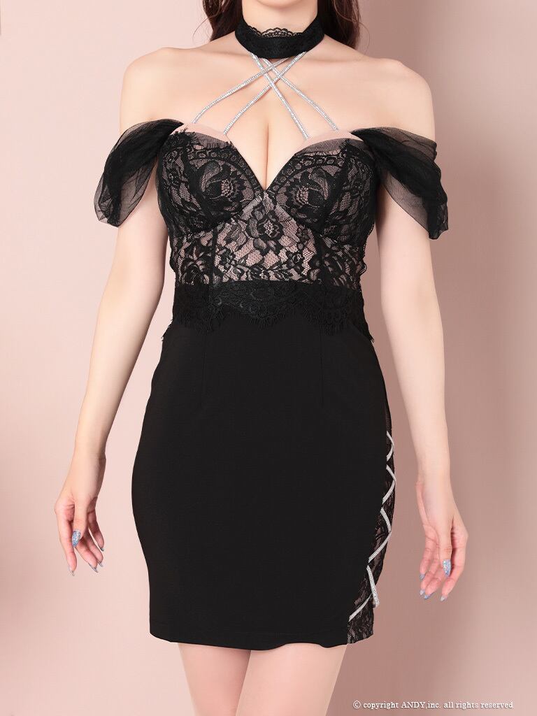 【an】レース切り替えチョーカー風シフォンドレス(AOC-3280)
