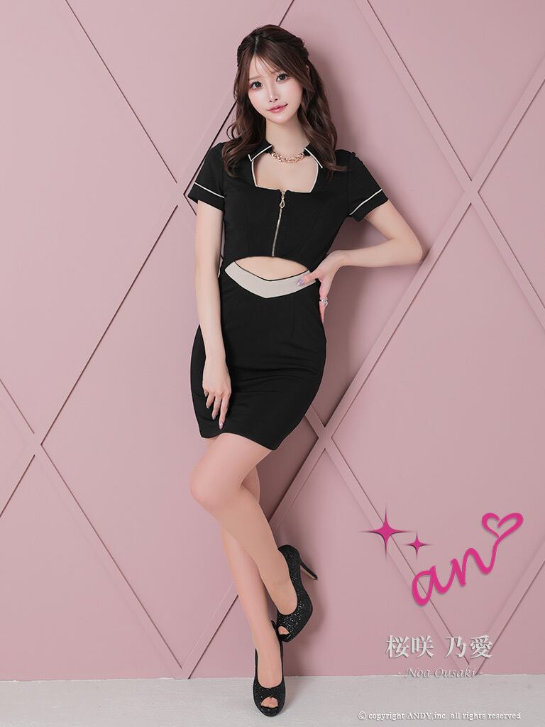 【an】襟付ジップデザインお腹チラ魅せドレス(AOC-3501)
