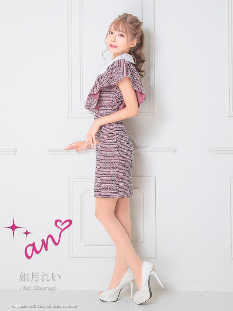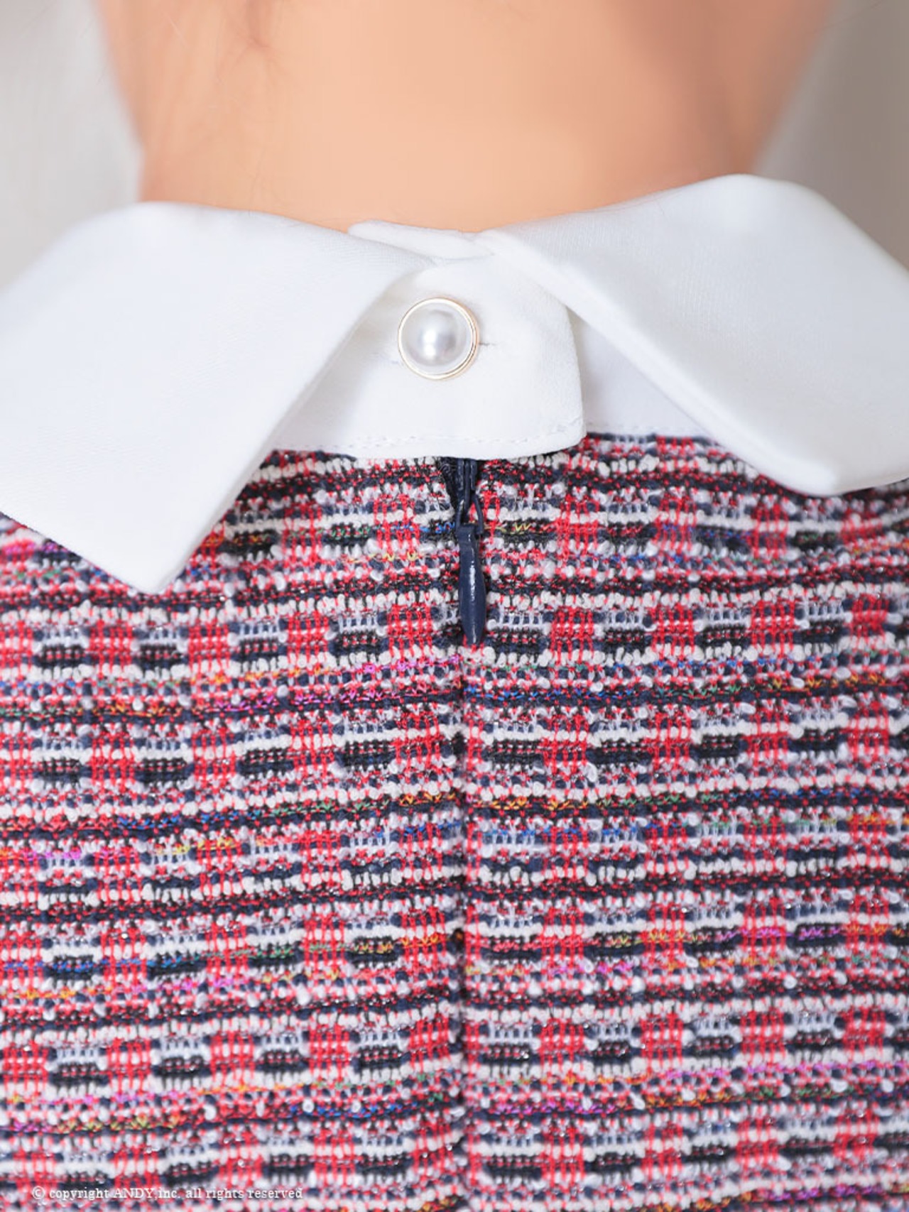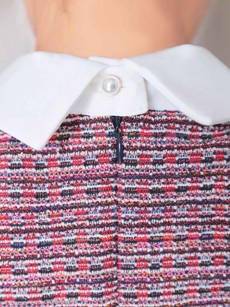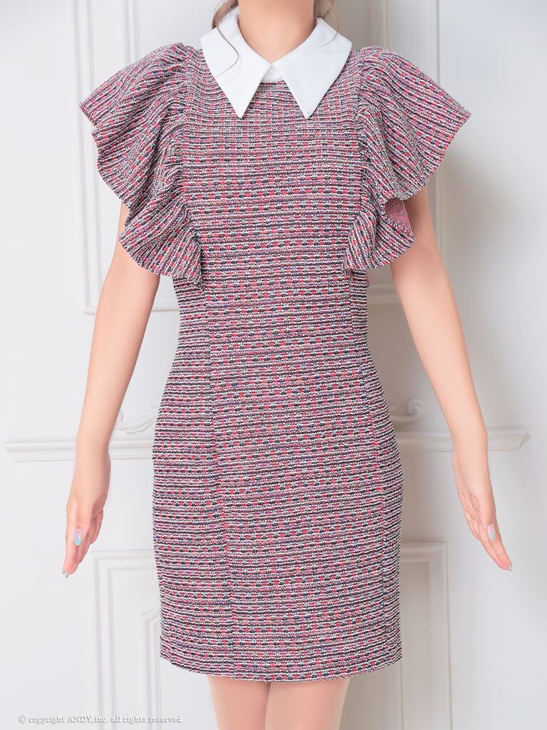 【an】襟付フリルスリーブツイードドレス(AOC-3495)