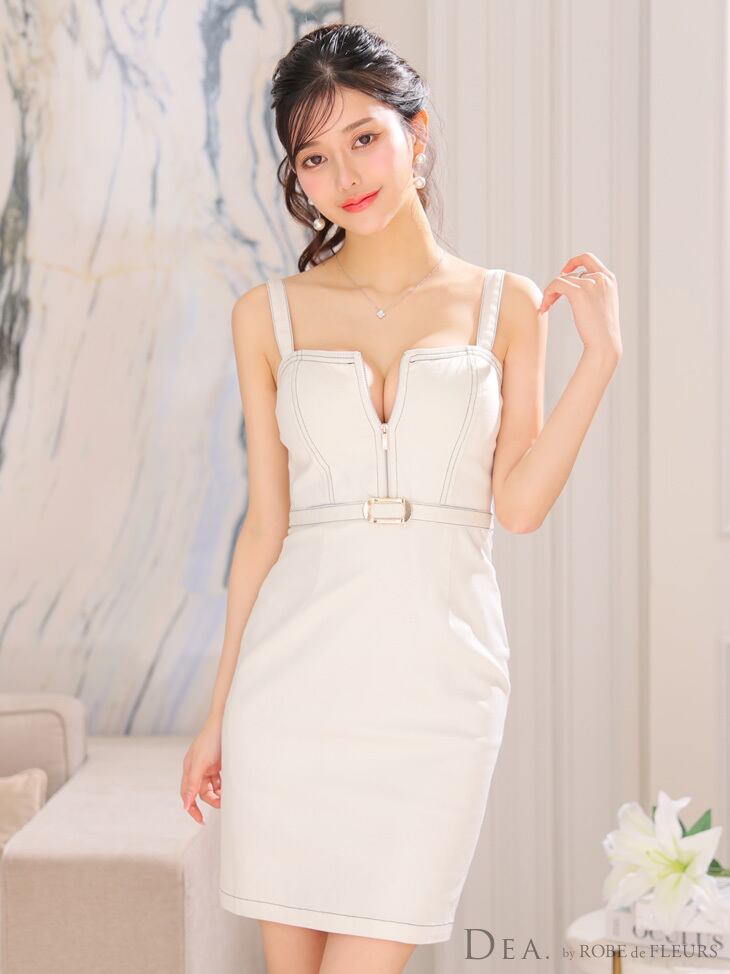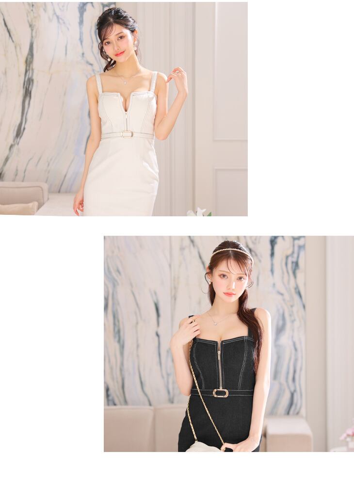 バストジッパーデニムステッチタイトキャバドレス(DE3715)