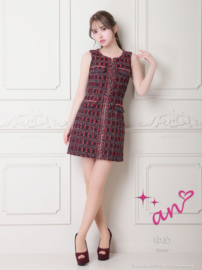 【an】チェック柄ツイードフロントジップドレス(AOC-3542)