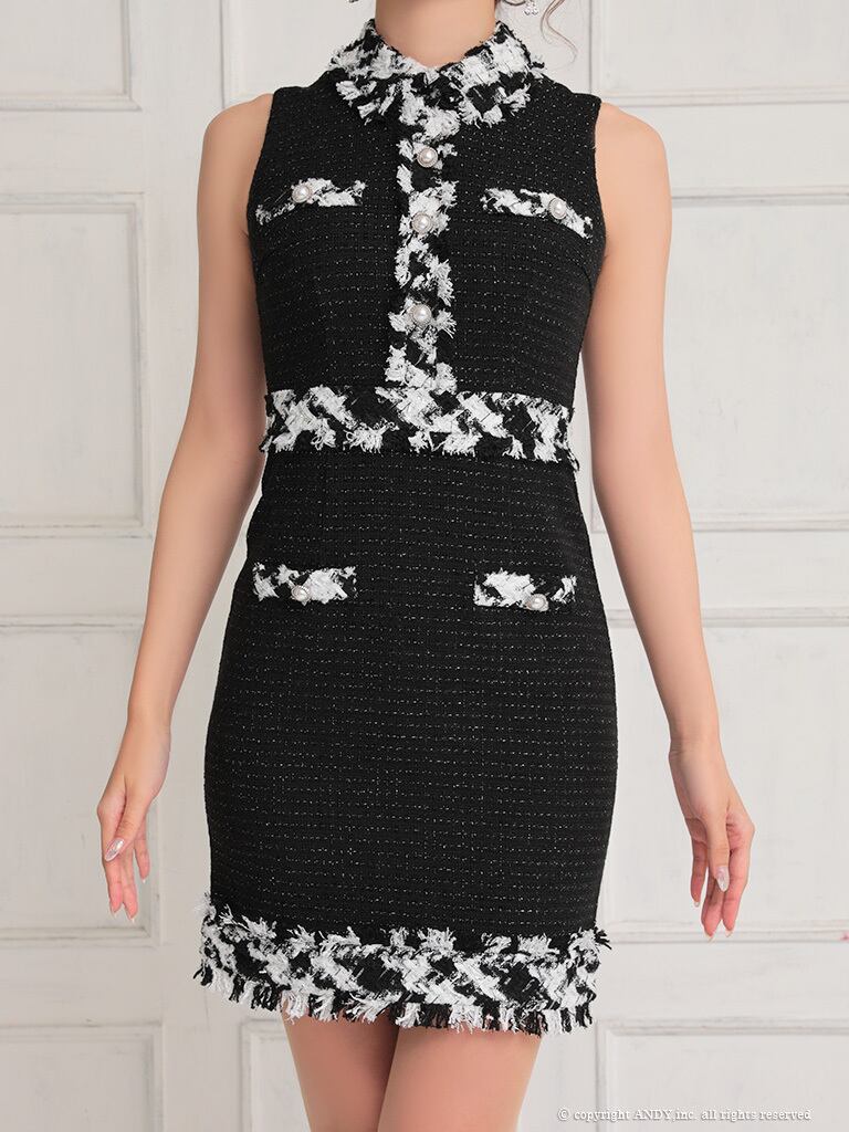 【an】ハイネックツイードデザインドレス(AOC-3523)