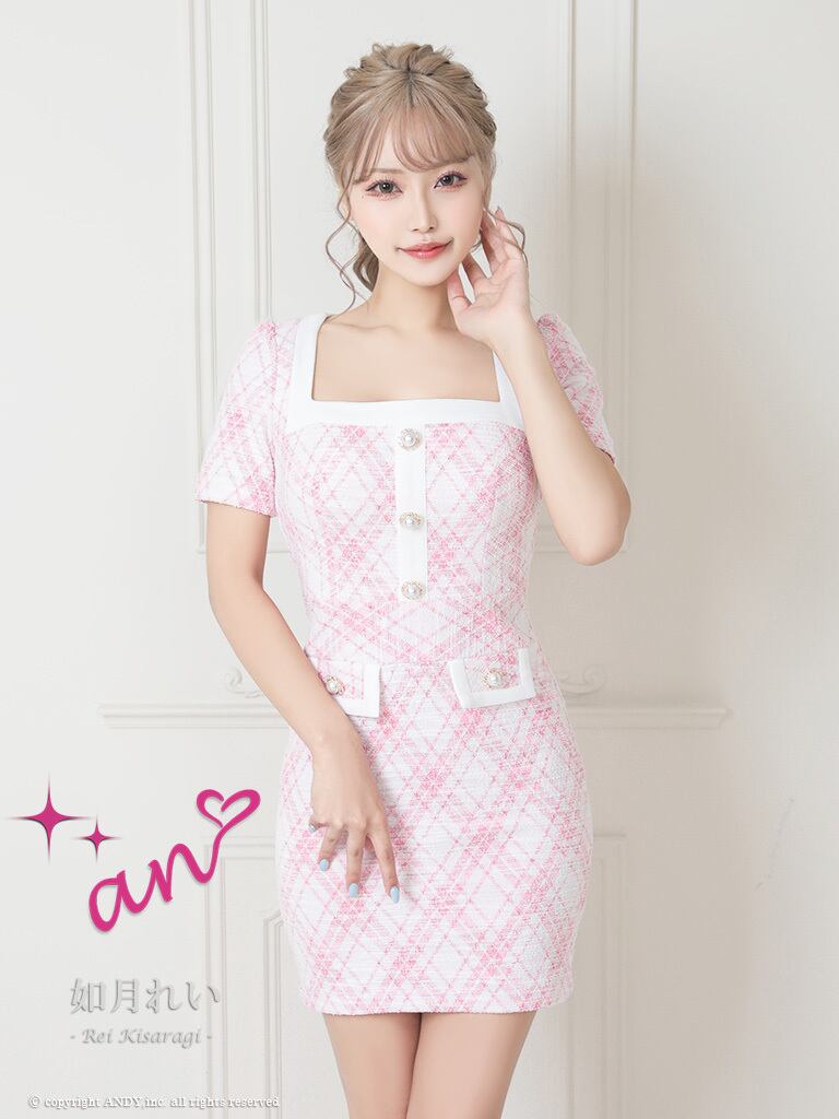【an】チェック柄ツイードスリーブドレス(AOC-3436)