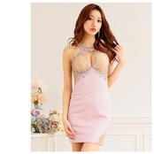 AngelR [エンジェルアール] アッパーレースビジューホルターネックデザインタイトミニドレス |AR24322